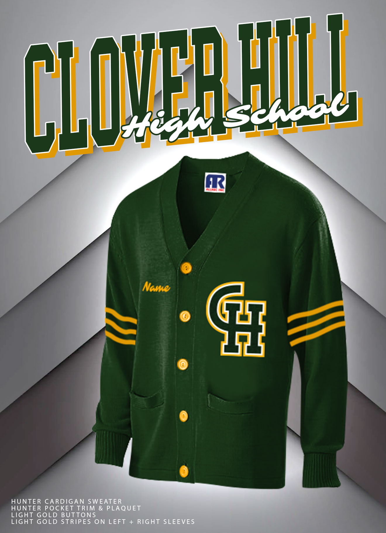 Embroidered Name and Grad Year on Right Front of Cardigan